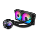 ARGB lighting on the NCVM-coated pump cover and the radiator fans conveys a sleek, modern design.